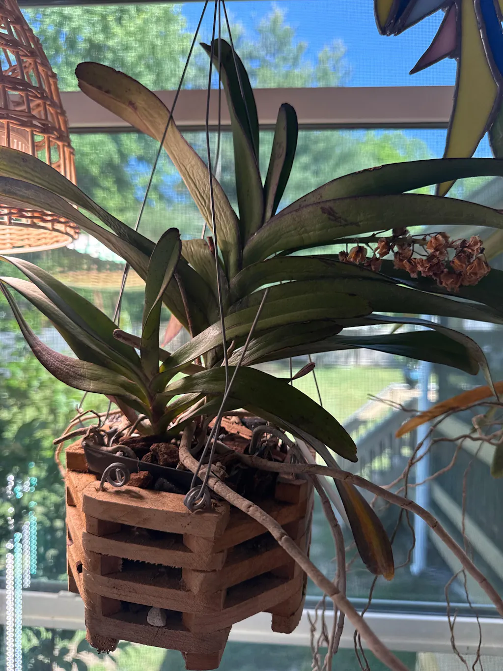 A very sturdy octagonal wood orchid basket for hanging many types of orchids and staghorn ferns! Premium wood lasts a long time in the high humidity of the greenhouse, and under the constant moisture of daily watering and misting.
